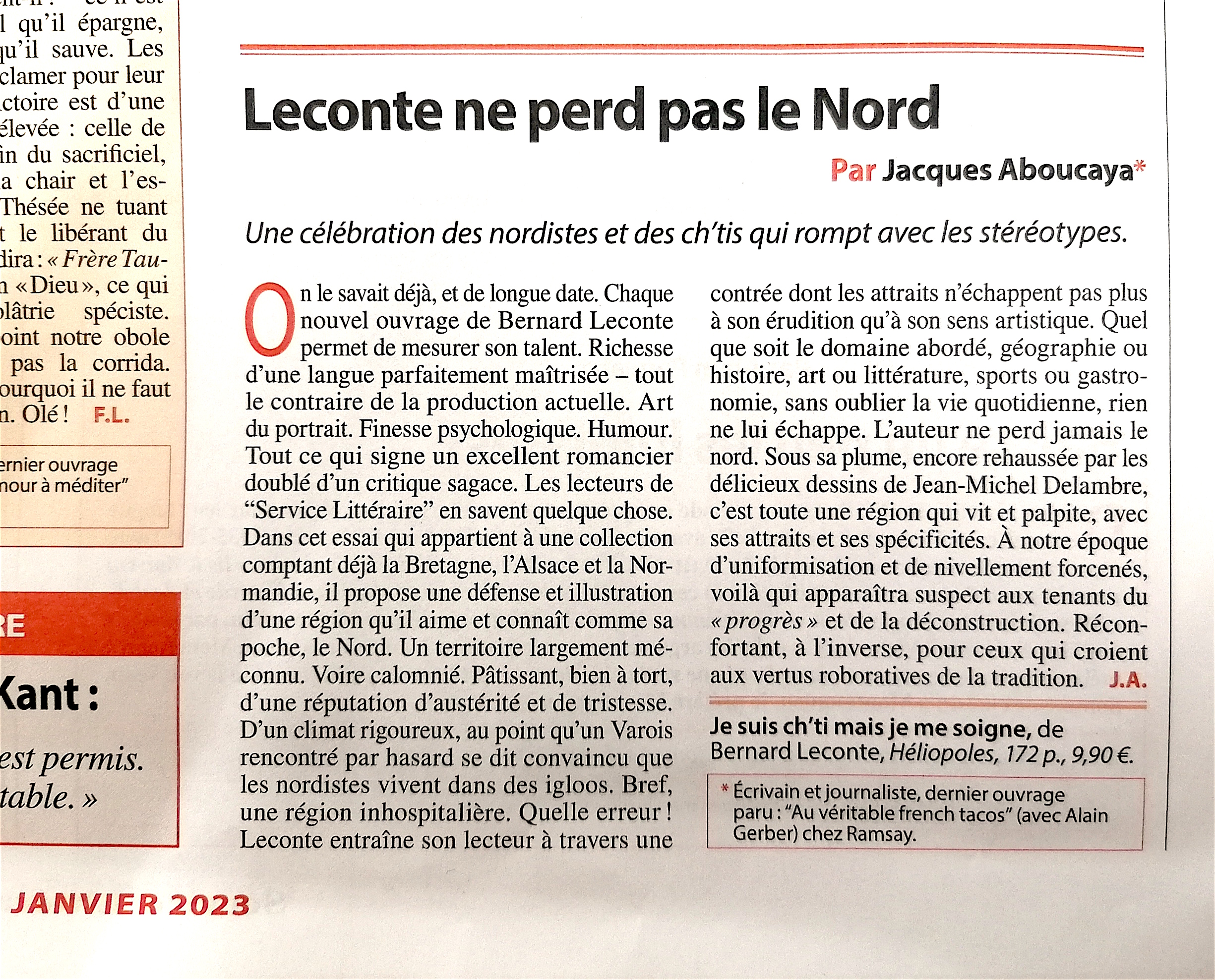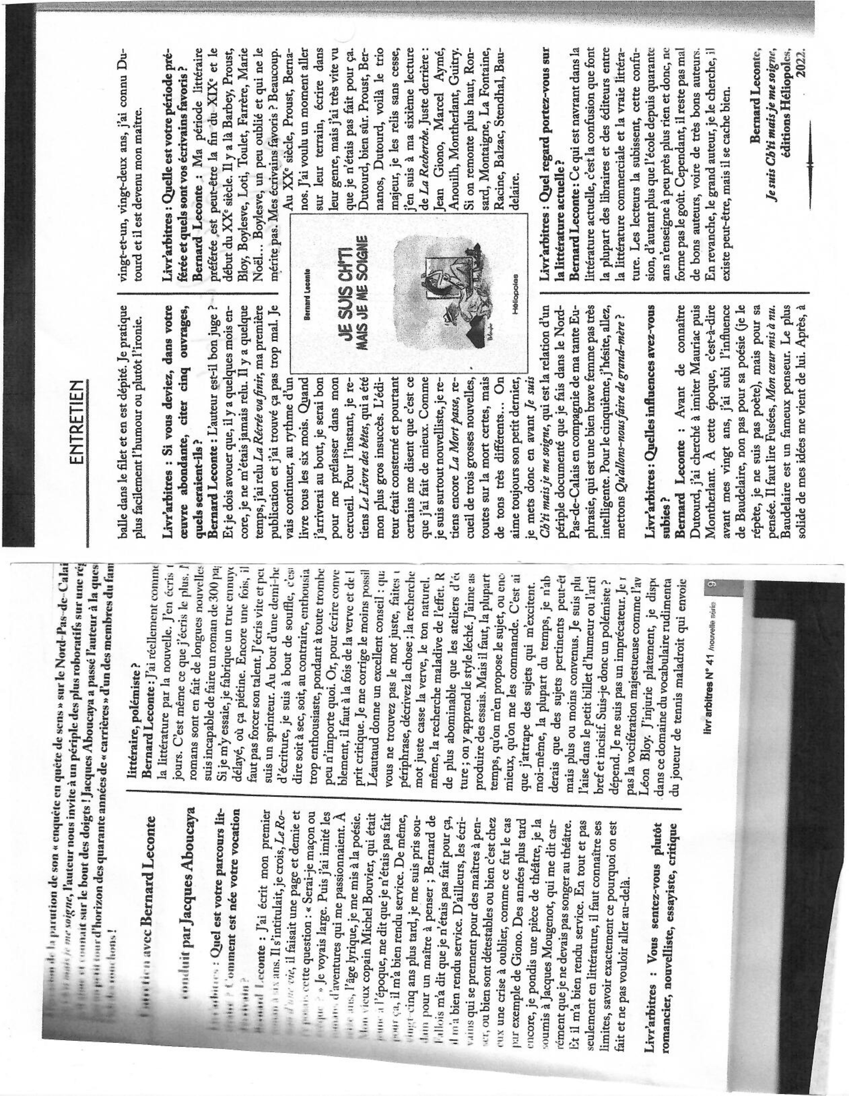 Né à Lille, Bernard Leconte est écrivain et journaliste. Il est l'auteur de plusieurs livres sur le Nord et sur la langue française. Il produit et anime l'émission "La Baraque à livres" sur RCF.